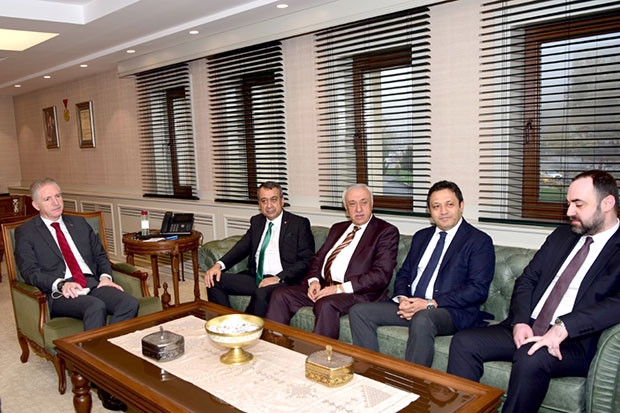 Gaziantep Valisi Davut Gül’ü ziyaret eden Güneydoğu Anadolu İhracatçı Birlikleri Koordinatör Başkanı Ahmet Fikret Kileci ve yönetim kurulu üyeleri gündemle ilgili konuları değerlendirerek bölge ihracatının arttırılması yönündeki çalışmalar hakkında Vali Bey’e bilgi verdi.