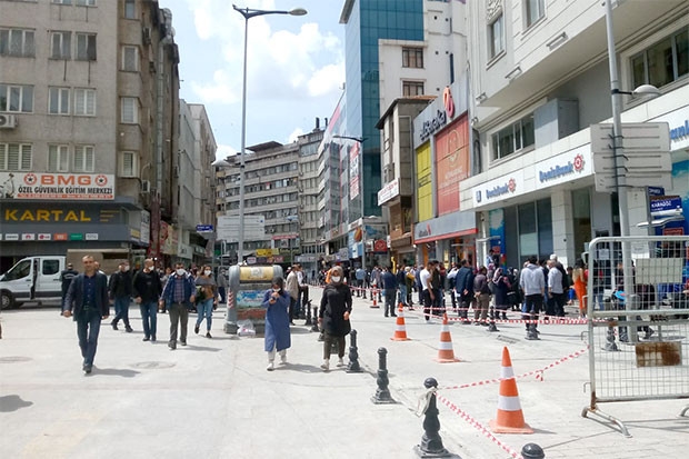 Gaziantep'te sosyal mesafeye dikkat edilmemesinin yanı sıra maske kullanmayanların da olması dikkat çekti. Ateşleri ölçülerek caddelere girenler, ihtiyaçlarına yönelik alışveriş yaptı. Kent merkezindeki birçok banka ve PTT şubesi önünde de işlem yaptırmak isteyenler uzun kuyruk oluşturdu. Görevliler ve polis ekipleri, işlem yaptırmak için sıra bekleyenleri sosyal mesafe kuralına dikkat etmeleri konusunda uyardı.