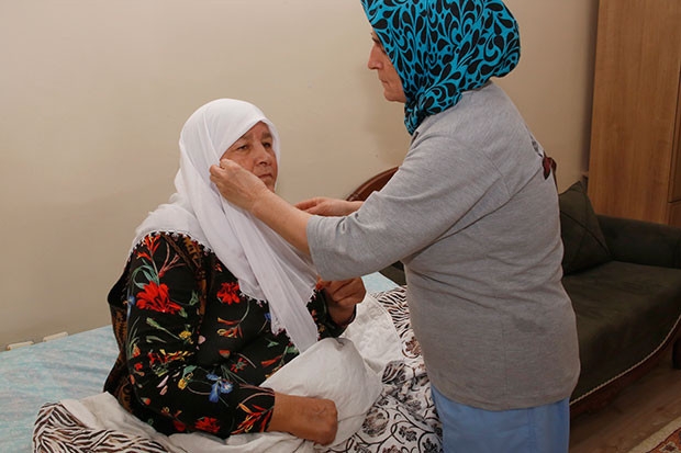 “Hastalığım önce şeker ile başladı. Daha sonra tansiyon rahatsızlığım başladı. 20 senedir şeker ve tansiyon hastalığım vardı. Daha sonra Parkinson hastalığına yakalandım. 8-9 senedir de Parkinson hastalığım var. 5 seneden beridir de yatağa bağlı yaşıyorum. Allah’ın ve belediyemizin yardımı ile yaşıyoruz. Rabbim, bize bu hizmeti sağlayanlardan razı olsun. Sağlık hizmetleri evimize kadar getiriliyor. Evimiz düzenli olarak temizleniyor. Allah, evimize temizliğe gelenlerden razı olsun. Bir şikayetimiz yok. Allah, bu durumumuzdan kötü etmesin, başka dert vermesin. Allah, tüm Müslümanların yar ve yardımcısı olsun.”