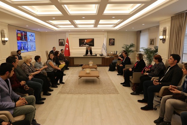 Gün boyunca Suriyelilere yönelik yapılan çalışma ve proje alanlarını yerinde ziyaret ederek bilgi alan heyet, ardından Büyükşehir Belediye Başkanı Fatma Şahin ile biraraya geldi.