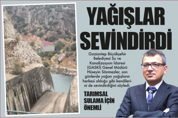 GASKİ Genel Müdürü Sönmezler, yağışların tarımsal sulama açısından da önemli olduğuna dikkat çekerek, “Bugünlerde yağan yağışlar faydaya dönüşebilir dediğimiz yağışlardan. 500 kg’a kadar yağış almayı bekliyoruz. Kısa ve orta vadede Gaziantep’in su sorunu olmayacak. Yağışlar tarımsal alanda bu dönemde herhangi bir barajdan veya sulama kanallarından su verilmemesi, yağıştan sulamanın gerçekleşmiş olması bizim için sevindirici. İlerleyen aylarda da yağışların bu şekilde sürmesi halinde baraj, gölet ve su kanallarını tarım sahalarının sulanması için kullanmaya gerek kalmayacak” dedi.