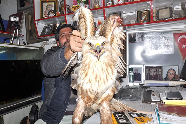 İslahiye’de bir inşaat işçisi yol kenarında yaralı halde bulduğu kızıl şahini veterinere götürerek tedavi ettirdi.