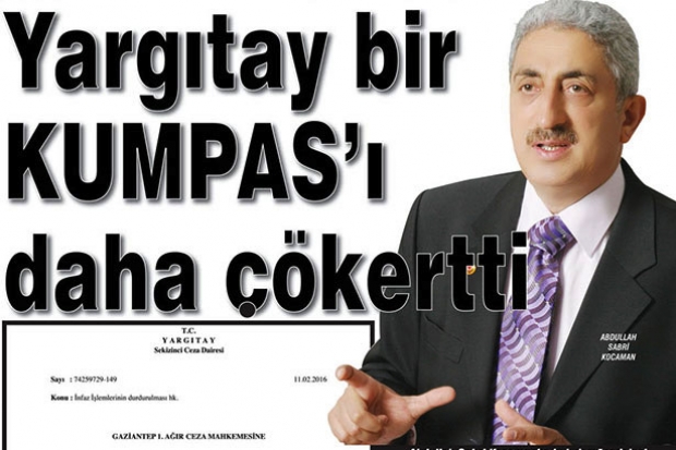 Paralel Yapı'nın kumpasıyla Abdullah Sabri Kocaman, Gaziantep 1. Ağır Ceza Mahkemesi'nin 2012/73 esas 2012/309 karar sayılı ilamı ile bir hukuk cinayeti işlenerek mahkum edilmiş; sözkonusu bu karar Paralel Yapı marifetiyle o dönemde Yargıtay tarafından da onanmıştır.