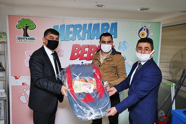 ‘Merhaba Bebek’ projesi kapsamında yeni doğan tüm bebeklere ilk hediyeleri Şehitkamil Belediyesi tarafından veriliyor. Şehitkamil İlçe Nüfus Müdürlüğünü ziyaret eden Şehitkamil Belediye Başkanı Rıdvan Fadıloğlu, yeni doğan bebeklerin babalarına puset ve eğitim kitapçığı hediye etti.