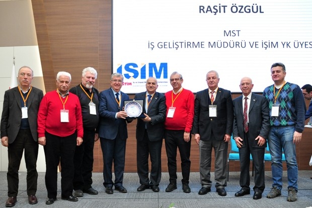 MST İş ve Tarım Makinaları İş Geliştirme Müdürü Raşit Özgül, yerli üretime katkılarından dolayı Ankara OSTİM Yönetim Kurulu Başkanı Orhan Aydın’a teşekkür plaketi takdim etti.