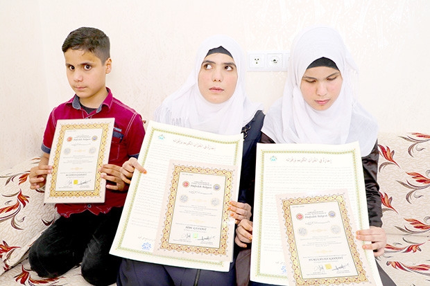 Suriye’deki iç savaştan kaçarak aileleriyle birlikte Türkiye’ye sığınan görme engelli üç kardeş, çadır kentte televizyondan izledikleri hafızdan etkilenerek Kuran kursuna gidip hafız oldu.