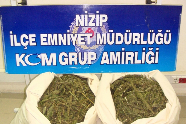 Nizip İlçe Emniyet Müdürlüğü Kaçakçılık ve Organize Suçlarla Mücadele Bürosu ekipleri, istihbarı çalışmalar sonucu doğu illerinden temin edilen uyuşturucu esrar maddesinin Nizip ilçesi üzerinden batı illerine sevkiyatı yapılacağı ihbarı üzerine harekete geçti. Gaziantep’in Nizip ilçesine yaklaşan aracı takibe alan ekipler, aracı ilçe girişinde durdurarak arama yaptı. Yapılan aramada aracın bagajında çuvallar içerisinde gizlenmiş poşetlere sarılı halde 15 kilogram esrar maddesi ele geçirdi.