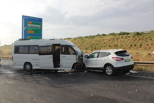 Kaza, Gaziantep-Nizip karayolunun 6. kilometresinde meydana geldi. İddiaya göre, Gaziantep'ten Nizip ilçesi istikametine seyir halinde bulunan F.A. idaresindeki 21 AAE 044 plakalı otomobil, aniden yavaşladı. Arkasında seyir halinde bulunan N.M. yönetimindeki 27 ANR 46 plakalı minibüs, otomobile çarparak kontrolden çıktı. Yoldan çıkan minibüs, karşı yönden gelen ve sürücü öğrenilemeyen 27 Ç 3437 plakalı otomobile çarptı. Zincirleme kazada, araç sürücülerinin de aralarında bulunduğu toplam 11 kişi yaralandı. Yaralılar olay yerine gönderilen ambulanslarla Gaziantep'teki hastanelere kaldırılarak, tedavi altına alındı.
