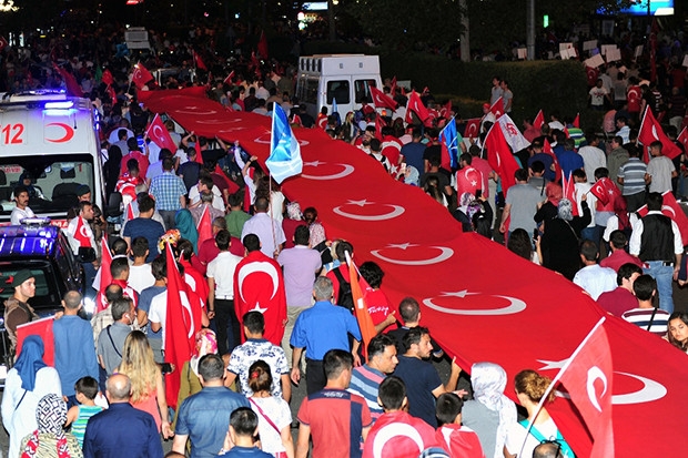 Ankara’da “15 Temmuz Demokrasi ve Milli Birlik Günü”nün birinci yılı kutlamalarında coşkulu anlar yaşandı. Ulus’taki eski TBMM’den yürüyüşe geçen vatandaşlar, 3 kilometrelik Türk bayrağı eşliğinde yürüdü.