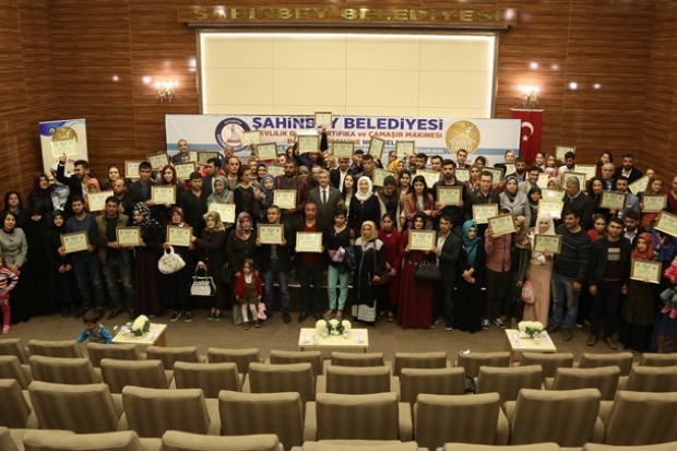 Şahinbey Belediyesi, Gaziantep İl Müftülüğü, İl Sağlık Müdürlüğü, İl Emniyet Müdürlüğü, Gaziantep Üniversitesi, Hasan Kalyoncu Üniversitesi ve Şahinbey Rehberlik Araştırma Merkezi ile bilirlikte yürütülen proje kapsamında düzenlenen Evlilik okulu kursiyerleri düzenlenen törenle sertifikalarını aldı. şahinbey Belediyesi Sertifika törenine, Gaziantep AK Parti Milletvekili Mehmet Erdoğan, Şahinbey Belediye Başkanı Mehmet Tahmazoğlu, Şahinbey İlçe Müftüsü Musa İmamoğlu, başkan yardımcıları, kurum müdürleri ve kursiyerler katıldı. Projenin mutlu ve huzurlu bir toplum oluşturmak olduğunu belirten Milletvekili Erdoğan, "İki dönemdir Şahinbey İlçesinde hizmet veriyorsunuz. Bu döneminizde de ne geceniz ne sabahınız belli olmadığı gibi bütün ekibinizle birlikte koşturuyorsunuz ve gayret gösteriyorsunuz. Halkımıza hizmet ediyorsunuz. Bu insanlar bizim kardeşlerimiz. Bu ülke geçmişte çok bakanlar, milletvekilleri ve belediye başkanları gördü. Bunlar insanlarımıza tepede bakıyorlardı. O tepeden bakanların geldiği noktalar belli. Hem kendi kendilerini mahvettiler hem ülkemizi. Ama siz geçmişte hangi hizmet anlayışı ile başladıysanız bugün aynı hizmet anlayışı ile çalışıyorsunuz” dedi.