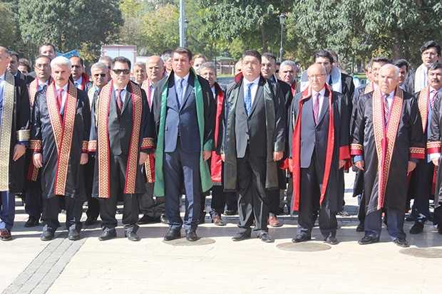 Atatürk anıtına çelenk bırakılmasının ardından saygı duruşu ve İstiklal Marşı'ndan sonra hukukçular ve avukatlar basın açıklaması için adliyeye gitti. Demokrasi Meydanı’nda gerçekleşen törene Cumhuriyet Başsavcı Vekili Sami Çete, Adalet Komisyon Başkanı Fatih Birkan Güneri, Bölge Adliye Mahkemesi Cumhuriyet Başsavcısı Mustafa Yalçın, Bölge Adliye Mahkemesi Başkanı Yusuf Kaya, Bölge İdare Mahkemesi Başkanı Yüksel Navdar, Gaziantep Baro Başkan Vekili İskender Kahraman ve çok sayıda avukat katıldı.