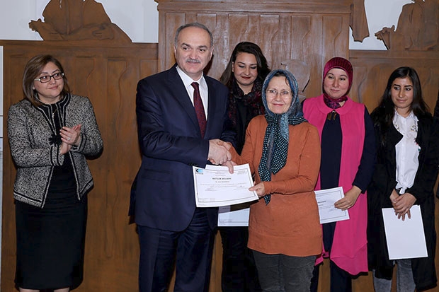 Gaziantep Büyükşehir Belediyesi Sanat ve Meslek Eğitim Kursları (GASMEK) ile KOSGEB’in işbirliğinde düzenlenen “Girişimcilik Kursu”ndan mezun olanlara sertifikaları verildi.