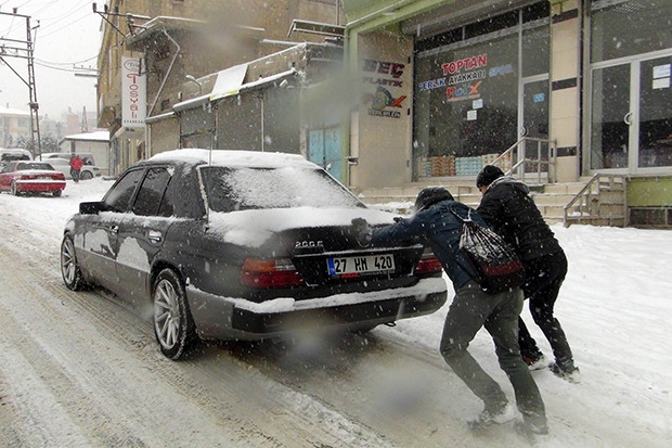 Gaziantep'te etkili olan kar yağışı sürücüleri hazırlıksız yakaladı. Kar lastiği takan sürücüle