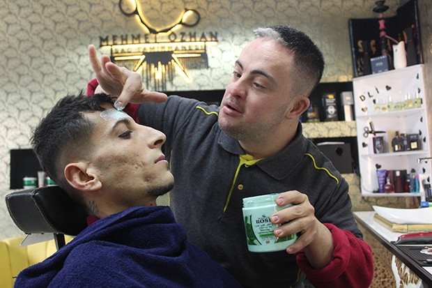 Gaziantep'te, 3 yıl önce bedava tıraş olmak için geldiği erkek berberinde iş yeri sahibinin desteğiyle iş hayatına atılan 29 yaşındaki down sendromlu İbrahim Yümüç'e, +1 kromozomu engel olmadı. Üç yıldır çalıştığı berber dükkanında çalışkanlığı ile gözbebeği olan İbrahim Yümüç, hem gelen müşterilerin verdiği bahşişlerle mutlu oluyor hem de emeğinin karşılığı olan maaşını alıyor.