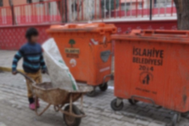 Suriye'nin İdlib kentinden 3 yıl önce kaçıp Türkiye'ye sığınan ve İslahiye'ye yerleşen Abdullah Muhammed, el arabası ile çöp konteynerlerindeki atık plastik ve demirleri toplayarak hurdacıya satıyor. Yaşıtları parklarda oyun oynayarak zaman geçirirken boyundan büyük çöp konteynerlerinin içine girip atık malzeme toplayan Muhammed, gün boyunca topladıklarını satarak 10 lira kazandığını söyledi.
