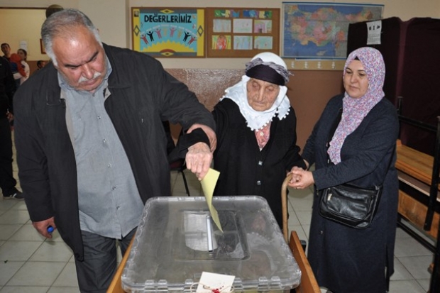 Atatürk Mahallesi'nde oturan 9 çocuk, 46 torun sahibi Ayşe Uskar, oğlu Mustafa ve gelini Hatice ile birlikte aynı mahallede bulunan Atatürk İlkokulu'na geldi. Oğlu ve gelinin kolunda kullanacağı 1012 nolu sandığa gelen Uskar, görevlilerin yönlendirmesiyle kabine girdi ve tercihini yaptı.