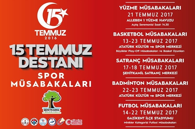 15 Temmuz Destanı ve Şehitleri Anma etkinleri çerçevesinde Şehitkamil Belediye Başkanlığınca, basketbol, badminton, futbol, satranç ve yüzme branşlarında düzenlenecek olan spor müsabakaları farklı yaş gruplarından yüzlerce öğrencinin katılımıyla gerçekleştirilecek. 15 Temmuz gecesi ruhunun yaşayarak anlatılacağı sportif etkinlikler,Temmuz ayı sonuna kadar büyük bir coşku ile sürdürülecek.