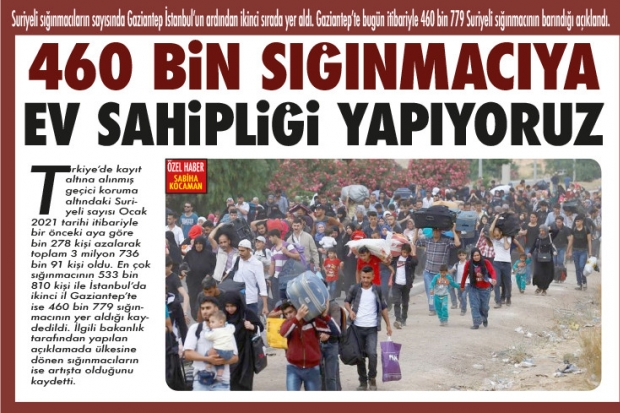 Türkiye’de kayıt altına alınmış geçici koruma altındaki Suriyeli sayısı Ocak 2021 tarihi itibariyle bir önceki aya göre bin 278 kişi azalarak toplam 3 milyon 736 bin 91 kişi oldu. En çok sığınmacının 533 bin 810 kişi ile İstanbul'da ikinci il Gaziantep'te ise 460 bin 779 sığınmacının yer aldığı kaydedildi. İlgili bakanlık tarafından yapılan açıklamada ülkesine dönen sığınmacıların ise artışta olduğunu kaydetti.