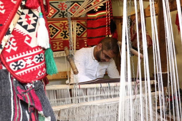 Suriyeli Kasım ailesi 500 yıldır devam ettirdiği kilim dokumacılığını Gaziantep'te devam ettiriyor.