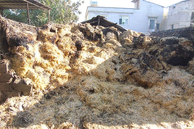 İş makineleri yanan saman balyalarını mahalle dışına taşırken yangınla soruşturma başlatıldı