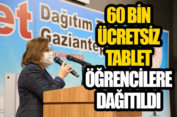 Milli Eğitim Bakanlığı öncülüğünde Sanayi ve Teknoloji Bakanlığı’nın desteğiyle Gaziantep Valiliği koordinasyonunda Gaziantep Büyükşehir Belediyesi, Şahinbey Belediyesi, Şehitkamil Belediyesi ve Organize Sanayi Bölgesi’nin finansal iş birliğinde askıda tablet kampanyası kapsamında “60 Bin Tablet Dağıtım Töreni” düzenlendi. Milli Eğitim Bakanı Ziya Selçuk’un video konferans yöntemiyle katıldığı törene, Büyükşehir Belediye Başkanı Fatma Şahin, Gaziantep Valisi Davut Gül, Şehitkamil Belediye Başkanı Rıdvan Fadıloğlu, OSB Yönetim Kurulu Başkan Yardımcısı Ömer Cıncıkçı, AK Parti Gaziantep milletvekillerinden Mehmet Sait Kirazoğlu, Nejat Koçer, Derya Bakbak ve Ahmet Uzer, MHP Gaziantep milletvekillerinden Muhittin Taşdoğan ve Sermet Atay hazır bulundu.