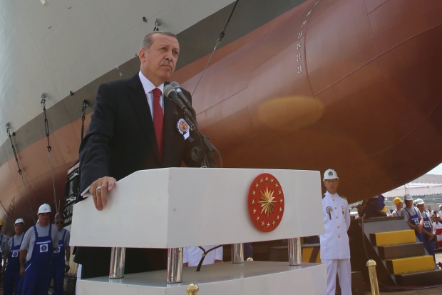 Cumhurbaşkanı Erdoğan, Burgazada Korveti'nin denize indirilmesi ve Kınalıada Korveti'nin ilk kaynak törenine katıldı. İstanbul Tersanesi Komutanlığı'nda gerçekleştirilen törende Cumhurbaşkanı Erdoğan'ın yanı sıra Başbakan Binali Yıldırım, TBMM Başkanı İsmail Kahraman, Milli Savunma Bakanı Fikri Işık, Milli Eğitim Bakanı İsmet Yılmaz, Genelkurmay Başkanı Orgeneral Hulusi Akar ve Deniz Kuvvetleri Komutanı Oramiral Bülent Bostanoğlu da yer aldı. Törende hitap eden Cumhurbaşkanı Erdoğan, Türkiye'nin kendi uçak gemisini yapacağını bildirerek, "İnşallah bugün olduğu gibi ülke güvenliğimiz açısından kritik önemi olan bu tür projelerin sayılarını artırarak sürdüreceğiz. Artık biz kendi uçak gemimizi yapar hale geleceğiz ve uçak gemimizi de inşallah yapacağız. Türk Silahlı Kuvvetleri kendi uçak gemisine de sahip olacak. Bunu da başaracağız. Hiçbir engel yok. İnanırsanız başarırsınız. Şu anda evelallah bu azim ve kararlılıkta olan bir hükümet vardır, bir devlet vardır" ifadelerini kullandı.