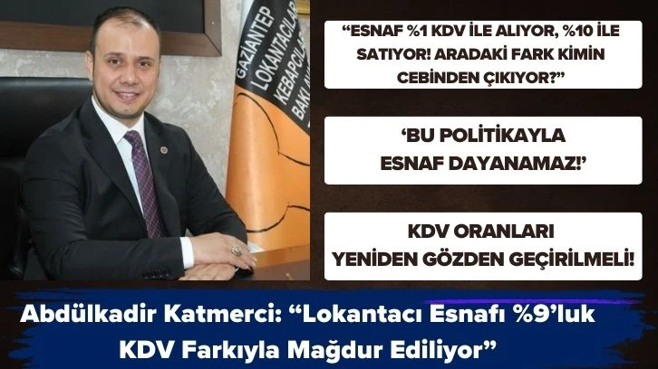 Başkan Katmerci, yaptığı açıklamada, devletin gıda enflasyonunu düşürmek amacıyla kasap, market ve bakkallarda KDV oranını hem giriş hem de çıkış için %1’e düşürdüğünü hatırlattı. Ancak, lokanta, tatlıcı ve benzeri işletmelerde işlenen ürünlerin çıkış oranının %10’a yükseltilmesi, sektör genelinde mağduriyete yol açtı.