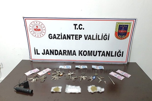 Edinilen bilgiye göre, Nizip ilçesi Kızılcakent Mahallesi'nde bir bağ evine girmeye çalışan hırsız, devriye gezen Nizip İlçe Jandarma Komutanlığı ekiplerine yakalandı. Gözaltına alınan hırsızın yapılan üst aramasında ise çok sayıda anahtar ile bir miktar uyuşturucu madde ele geçirildi. Olayla ilgili soruşturma başlatıldı.