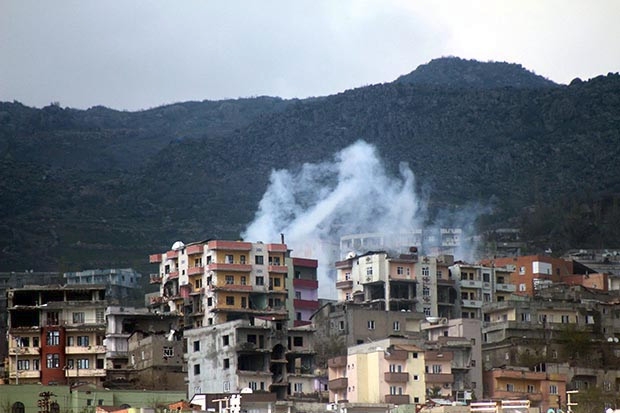 Şırnak'ta hendeklerin kapatılması, barikatların kaldırılması ve PKK'lı teröristlerin etkisiz hale getirilmesi için 14 Mart'tan itibaren uygulanan sokağa çıkma yasağı ile operasyonlar devam ediyor. Operasyonların sürdüğü Cumhuriyet Mahallesi'nde bugün güvenlik güçleriyle teröristler arasında çıkan çatışmada 4 asker yaralandı. Ambulanslarla Şırnak Devlet Hastanesi'ne kaldırılan yaralılardan durumu ağır olan 1 uzman çavuş, doktorların tüm müdahalesine rağmen kurtarılamayarak şehit oldu. Yaralı 3 askerin tedavisi ise devam ediyor. Güvenlik güçleri Cumhuriyet Mahallesi ile Bahçelievler mahallelerinde yoğunlaştırdıkları operasyonlarını sürdürüyor. Belirlenen bombalı tuzaklı barikatları imha etmek için top atışları yapıyor. Top atışlarının yapıldığı bölgelerden sık sık silah ve patlama sesleriyle dumanlar yükseliyor.