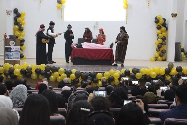 GAÜN Afrin Eğitim Fakültesi Konferans Salonunda düzenlenen programa GAÜN Rektör Yardımcısı Prof. Dr. Recep Yumrutaş, Afrin Eğitim Fakültesi Dekanı Prof. Dr. Habip Özkan ve Yunus Emre Enstitüsü Suriye Koordinatörü Fikret Çıtak katıldı. Program kapsamında Mevlânâ Celâleddîn-i Rûmî’nin hayatı ve sanatı; şiir, musiki dinletisi, tiyatro gösterisi ile kimsesiz çocuklar yararına etkinlik düzenlendi. Program sonunda düzenlenen etkinlikten elde edilen gelir, Afrin çevresindeki çadır kentte yaşayan ilkokul öğrencilerinin ihtiyaçlarının karşılanması için hibe edildi. GAÜN Afrin Eğitim Fakültesi Dekanı Prof. Dr. Habib Özkan’ın açılış konuşması sonrasında söz alan Rektör Yardımcısı Prof. Dr. Recep Yumrutaş, Hazreti Mevlana’nın büyük bir mutasavvıf, düşünür, âlim ve gönül adamı olduğunu vurgulayarak, “Hazreti Mevlana; yüzlerce yıldır hoşgörünün, iyiliğin, barışın ve kardeşliğin sembolü olmuştur. Hazreti Mevlana; yaşantısıyla insanlığa yol gösterici ve rehber olmuştur. İslam şehirlerinin yakılıp yıkıldığı bir dönemde Hazreti Mevlana sözleriyle, sohbetleriyle ve öğütleriyle karamsarlık havasını dağıtmış, bu coğrafyada yaşayan toplumların silkinmesine ve yeniden dirilişine sebep olmuştur. Hazreti Mevlana, her insanın kalbini gönlünü fethetmeyi başarmıştır. Hazreti Mevlana’nın gönüllerimizde varoluşunun nedeni sadece sözleri, şiirleri ve mesajları değil, sevgidir, aşktır. Aşk ise kişinin sevdiğinde hem hal olmasıdır. Vefatının üzerinden 748 yıl geçmesine rağmen Hazreti Mevlana'yı her zaman zihnimizde, gönlümüzde canlı tutmamızın sebebi hikmeti sevgidir, muhabbettir, aşktır” dedi.