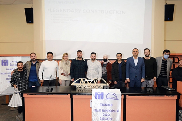 Yarışmada dereceye giren öğrencilere ödüllerini İMO Yönetim Kurulu adına İnşaat Mühendisleri Odası Gaziantep Şube Başkanı Gökhan Çeliktürk takdim etti.