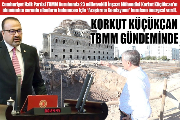 Şahinbey Belediyesi tarafından yaptırılan Akken Camide beton incelemelerinde bulunurken ahşap iskelenin çökmesi sonucu yaşamını yitiren İnşaat Mühendisi Korkut Küçükcan ile ilgili adli süreç devam ediyor. Sürecin takipçisi olacağını defalarca dile getiren Cumhuriyet Halk Partisi TBMM’de 23 milletvekiliyle olayın araştırılması için “Araştırma Komisyonu” kurulsun önergesi verdi. Önergenin önümüzdeki günlerde oylanması bekleniliyor.