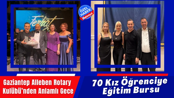 Gaziantep Alleben Rotary Kulübü, geleneksel hale gelen eğitim bursu gecesinin üçüncüsünü büyük bir katılımla gerçekleştirdi. 2025-2026 dönem başkanı Murat Korkmaz liderliğinde düzenlenen etkinlikte, bu yıl 70 kız öğrenciye burs desteği sağlanacağı açıklandı.