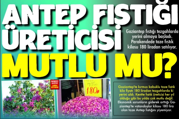 Gaziantep'te kırmızı kabuklu taze fıstık kilo fiyatı 180 liradan tezgahlarda ki yerini aldı. Kentte fıstık üreticisi her yıl olduğu gibi bu yılda çok mutlu değil. Ekonomik sorunların giderek arttığı Gaziantep'te vatandaşlar kilosu 180 lira olan taze Antep fıstığını yiyemiyor.