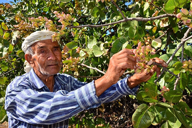 Yuntdağı'nda antepfıstığı yetiştiren 75 yaşındaki Halil Akın, bu ürünün üretiminin zaman içinde yayıldığını söyleyerek, menengiç ağaçlarının aşılandığını ve 5-6 yıl sonra fıstık vermeye başladığını belirtti. Antepfıstığı yetiştiricisi Akın, "Pazarlamada güçlük çekiyoruz. Tüccar bizden ucuza alıyor ama daha sonrasında ateş pahası oluyor. Piyasası da belli değil. Yetkililerden bunun bir borsası ve fiyat sınırlaması olmasını istiyoruz. Manisa'da bu ürün yetişiyor ama çok fazla sahip çıkan yok. Antepli tüccar gelip buradan alıyor, Antep'e götürüyor. Ancak kendi markasını kullanıyor. Biz Manisa'nın markası olsun, tescillensin ve fiyat politikası olsun istiyoruz" dedi. Birçok kişinin geçimini Antep fıstığından sağladığını belirten Halil Akın, "Hasat 15-20 Ağustos gibi başlıyor, 15 Eylül'de de bitiyor. Dallarından salkımlar kırılıyor. Salkımıyla birlikte makineye atıyoruz. Suyunu da koyuyoruz. Boş olanlar üste çıkıyor, dolu olanlar da altında kalıyor. Böyle ayrılıyor. Daha sonrasında ise 5-10 gün güneşte bekletilip kurutuluyor ve çuvallanıyor" diye konuştu.