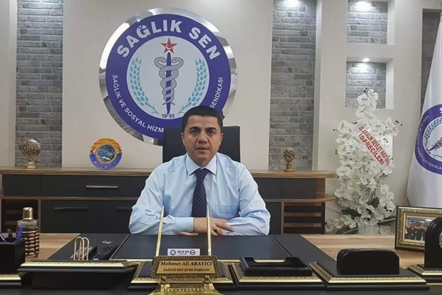 Sağlık-Sen Gaziantep Şube Başkanı Mehmet Ali Arayıcı, sağlık çalışanlarının iş yükünün ve sağlıkçılara yönelik şiddetin giderek arttığını, buna karşın sağlık çalışanlarının gelirlerinin düştüğünü söyledi.