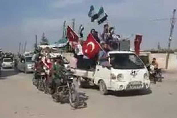 TÜRK Silahlı Kuvvetleri içerisinde bir grup askerin darbe girişiminin önlenmesi sonrasında Suriye’nin Azez kentinde de Suriye Türkmenleri, Türk ve Özgür Suriye Ordusu bayraklarıyla şehir turu attı.