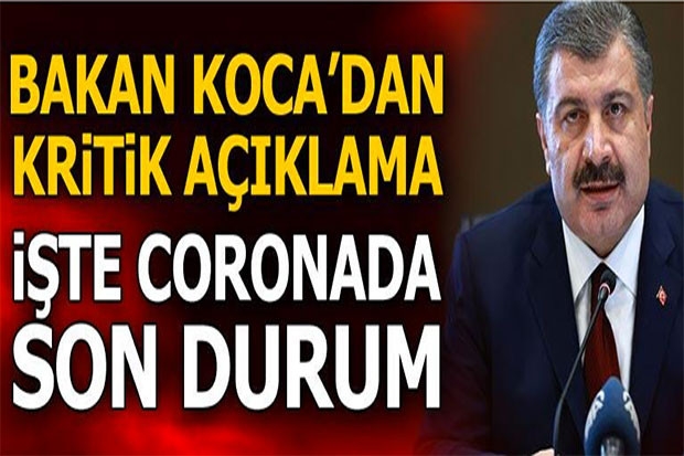 Sağlık Bakanı Fahrettin Koca, verilere ilişkin yaptığı paylaşımda, “Son 24 saatte iyileşenler, yeni tanı konan hastaların 2,25 katı. Toplam iyileşen sayısı 53 bin. Bu sayı bugüne kadarki toplam vaka sayısının yüzde 45’ine yakın. Yoğun bakım hasta sayısı azalıyor. Tedbirde dikkatli olalım. Dışarıdaki hava tabloyu değiştirebilir” ifadelerine yer verdi.