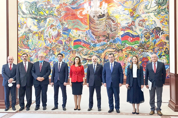 Azerbaycan Milli Meclisi Dış İlişkiler Komisyonu üyesi milletvekilleriyle heyetler arası görüşmelerde de bulunan TBMM Heyeti, son olarak Azerbaycan Dışişleri Bakanı Ceyhun Bayramov tarafından kabul edildi.