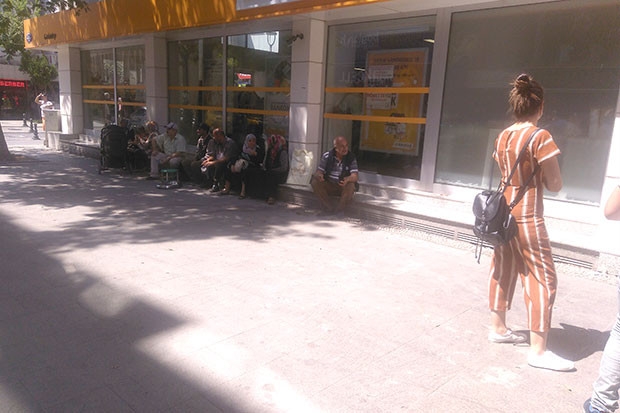 Ramazan Bayramında olduğu gibi Kurban Bayramında da emeklilere ikramiyeleri banka hesaplarına yatırılınca bankaların ve bankamatiklerin önünde kuyruklar oluştu.