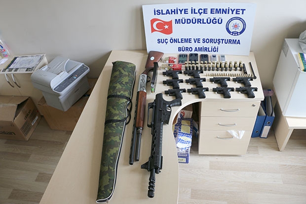 Gaziantep Emniyet Müdürlüğü ekipleri, bir bankaya bazı şahıslar tarafından 11 adet 500 euro'luk sahte banknot verildiği yönünde bilgi alınması üzerine harekete geçti. İslahiye İlçe Emniyet Müdürlüğü Suç Önleme ve Soruşturma Büro Amirliği ekipleri yapılan çalışmalarda E.Ç., Ö.F.K., A.B., H.K., İ.A., İ.H. ve K.Ü. isimli 6 şüpheliyi yapılan operasyonla yakalayarak gözaltına aldı. Ekipler, şüphelilerin ikamet, iş yeri, araç ve üst aramalarında 11 adet sahte 500 euro'luk banknot halinde toplamda 5 bin 500 euro sahte para, 2 av tüfeği ile bu tüfeklere ait 34 fişek, 10 tabanca ile bu tabancalara ait 10 şarjör ile 90 adet dolu mermi ve 5 adet cep telefonu ele geçirdi.