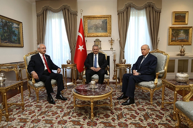 BAŞBAKAN Binali Yıldırım, Çankaya Köşkü'nde CHP Genel Başkanı Kemal Kılıçdaroğlu ve MHP Genel Başkanı Devlet Bahçeli ile bir araya geldi.