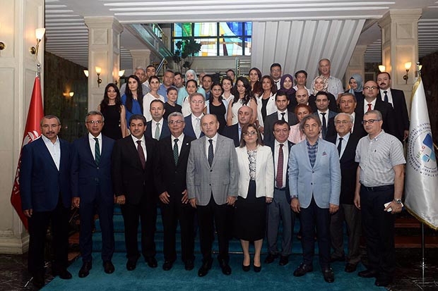 BİRLEŞMİŞ Kentler ve Yerel Yönetimler Orta Doğu ve Batı Asya Bölge Teşkilatı (UCLG-MEWA) heyeti, 15 Temmuz darbe girişiminde şehit düşenler için Büyükşehir Belediye (İBB) Başkanı Kadir Topbaş'ı makamında ziyaret etti. Fatih Saraçhane'de bulunan İstanbul Büyükşehir Belediye Başkanlığı'na gelen Birleşmiş Kentler ve Yerel Yönetimler Orta Doğu ve Batı Asya Bölge Teşkilatı (UCLG-MEWA) heyeti önce İBB Başkanı Kadir Topbaş ile birlikte bina dışındaki 15 Temmuz şehitlerinin fotoğraflarının bulunduğu panonun önünde karanfil bırakarak dua etti. Heyet daha sonra binanın içindeki darbe girişimi sonrası İBB binasının görüntülerinin bulunduğu pano önüne geldi. UCLG-MEWA Eş Başkanı Mohamed Saadieh, burada bulunan anı defterini imzaladı.