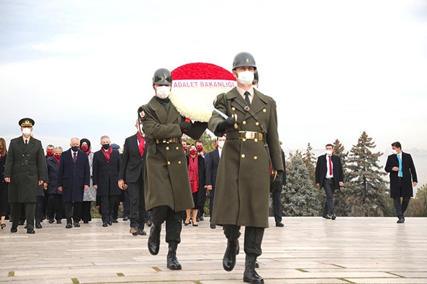 Gaziantep heyeti, “Gazilik” unvanının verilişinin 100’üncü yıl dönümü kapsamında Anıtkabir’deki mozoleye çelenk bıraktı. Heyet, mozoleye çıkan merdivenin önünde hatıra fotoğraf çektirdikten sonra Misak-ı Milli Kulesi'ne geçti. Adalet Bakanı Abdülhamit Gül, Anıtkabir Özel Defteri'ni imzaladı.