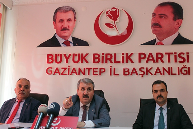 Büyük Birlik Partisi Genel Başkanı Mustafa Destici, Gaziantep’te partisinin il başkanlığı binasında basın toplantısı düzenledi. Gaziantep’in istihdam başta olmak üzere ihracatta önemli başarılara imza attığını anlatan BBP Genel Başkanı Destici, “Bunun dışında Gaziantep Suriye’de yaşanan iç savaşın mazlumlarını kucaklayan ve onlara sahip çıkan bir kent. Bu nedenle kenti ve bu kenti zirveye taşıyanları kutluyoruz” diye konuştu.
