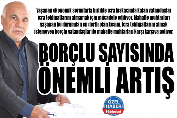 Yaşanan ekonomik sorunlarla birlikte icra kıskacında kalan vatandaşlar icra tebligatlarını almamak için mücadele ediliyor. Mahalle muhtarları yaşanan bu durumdan en dertli olan kesim. İcra tebligatlarını almak istemeyen borçlu vatandaşlar ile mahalle muhtarları karşı karşıya geliyor.