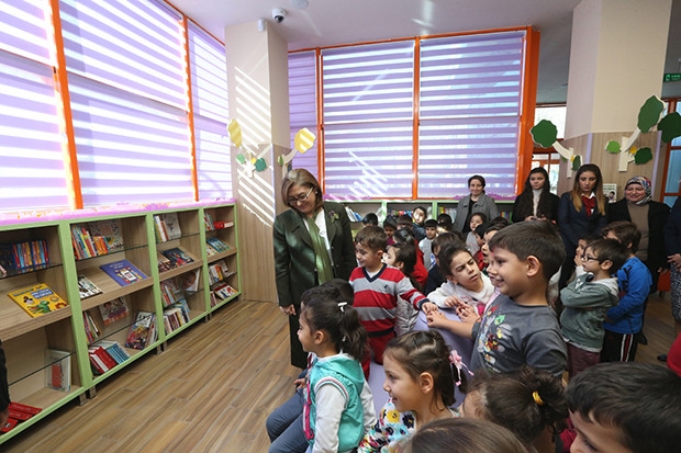 Çocukların yoğun ilgi gösterdiği çocuk kütüphanesini ziyaret eden Gaziantep Büyükşehir Belediye Başkanı Fatma Şahin, kütüphanede incelemelerde bulundu. Çocukların yoğun ilgi gören Şahin, onlarla sohbet etti.
