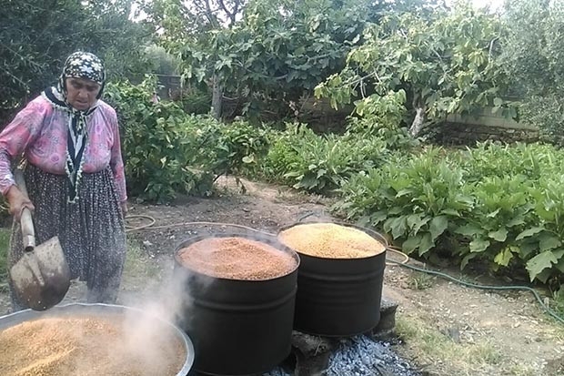 bunun gelenekleri aşları ekmekleri bulgur olmazsa karınlarının doymayacağını ifade eden 80 yaşındaki Medine Kara, "Sabah namazından ayaktayım. Kaynatma işi tamamladıktan sonra suyunun çekilmesi için brandalar üzerine boşaltıyorum, suyunun çekilmesi sonrasında komşulardan edindiğimiz çullar, kilimler ve branda üzerine serip kurumasını bekliyoruz. Kuruma işlemin sonrasında değirmenlere götürülerek burada yapılan işlem sonrası pilavlık, köftelik bulgur haline gelerek soframızdaki yerini alır. Vatandaşlar hedik dedikleri bu bulguru haşlanmış halde tuzlayarak ta yerler" diye konuştu.