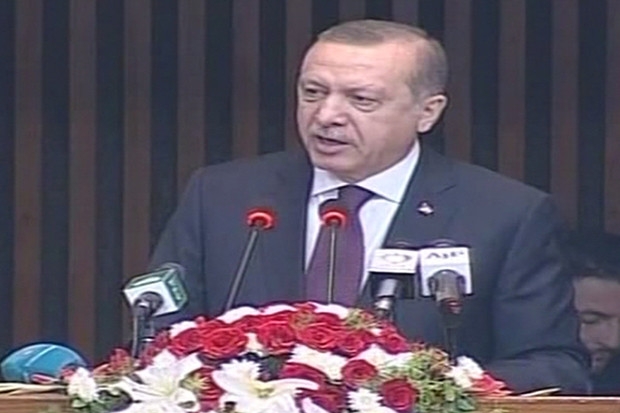 "Türkiye’de 15 Temmuz terörist darbe girişiminin ardından Pakistan’ın devlet yönetimiyle, meclisiyle ve halkıyla bizim yanımızda yer alan ilk ülke olduğunu özellikle belirtmek istiyorum. Meclisiniz ve senatonuzun ayrı ayrı kabul ettiği destek kararlarını memnuniyetler karşıladık. Şahsım ve milletim adına şükranlarımı özellikle ifade etmek istiyorum. Geniş bir siyasi yelpazeyi temsil eden milletvekillerinden oluşan heyetinizin Ağustos ayında ülkeme gerçekleştirdiği ziyareti terörle mücadelemize güç katmıştır. Pakistan FETÖ’nün faili olduğu 15 temmuz darbe girişimi karşısında İkinci Kurtuluş Savaşında da Türk milletinin yanında olduğunu göstermiştir.