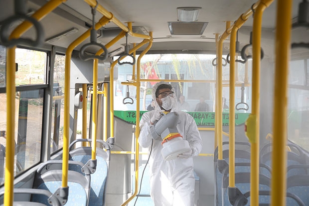 Bünyesine bağlı bina ve toplu taşıma araçlarının rutin dezenfektesini aralıksız sürdüren Büyükşehir, çalışma kapsamını genişletti. Büyükşehir Belediyesi ekipleri toplu taşıma hizmeti veren 665 adet mavi ve sarı özel halk otobüslerinin iç dış temizliği ve dezenfektesini yapmaya başladı, ayrıca taksi durakları, araçları, işçi servisleri için çalışmalara başlamasıyla beraber öğrenci servisleri de virüse karşı mücadelede hijyen tedbirleri kapsamına aldı. Özellikle yolcuların sıklıkla temas halinde olduğu kapı kolları, tutacaklar, koltuklar düzenli olarak dezenfekte edilecek. Öte yandan Büyükşehir Belediyesi zabıta ekipleri toplu taşıma şoförlerinin hijyen kurallarına uyup uymadığını denetleyecek, yolculardan gelen şikayetleri değerlendirecek.